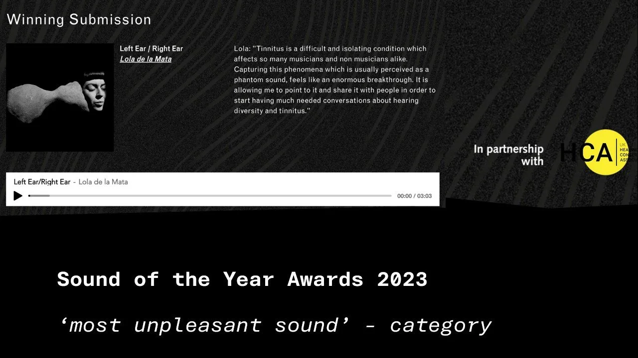 Tinnitus, which affects musicians 4x more than others, but can affect anyone, continues to have stigma around it (according to the charity Tinnitus UK there are 7.6 million people living with tinnitus in the UK). With this project I propose that we might choose to device for audiences beyond the pre-conceived ‘normal listener’ with ‘perfect’ hearing, who I would argue does not exist, in an effort to move toward a taboo-less, more accessible human listening.